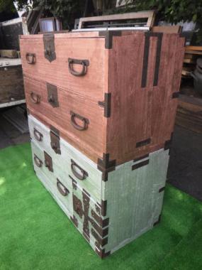 銀と銅に輝く華やかな印象の箪笥です。オリンピック2020の関連施設で使われたお品です。詳細はブログに掲載しております。https://hideshina.com/blog/金・銀・銅の/それぞれの高さは、銅色505mm、銀色510mmとなっております。