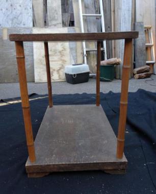 茶室で使われていた背が低めの台です。一見目立つタイプではないのですが、経年変化により味わいが出た天板と竹の素材は、他のものを引き立てるのに一役も二役も買います。ものを魅力的にみせる不思議なローテーブルです。お店のディスプレイや、飾り棚としてもご利用いただけると思います。