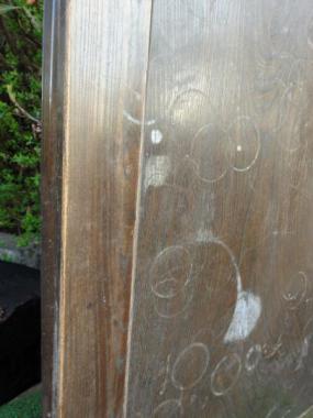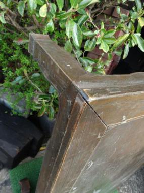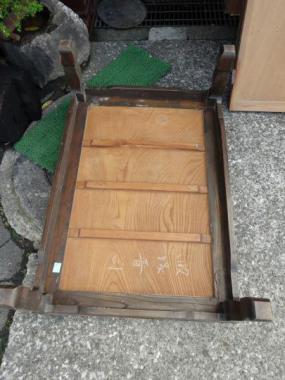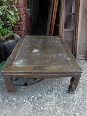 群馬県の吾妻郡のお屋敷でつかわれていたものです。天板が1018×732mmで、高さが330mmです。折り畳み不可です。天板にまるい跡が見られます。1M近く幅があって広々使えます。