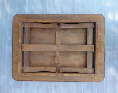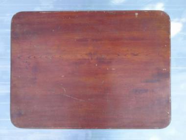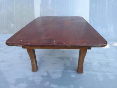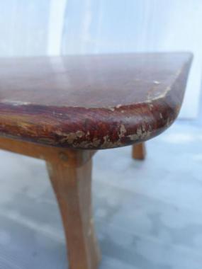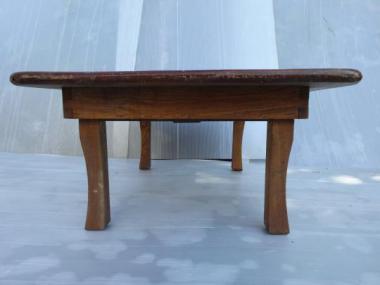 赤茶の色味が魅力的なちゃぶ台です。足はわずかに沿った形をしており、全体でみて、調和のとれた一台です。