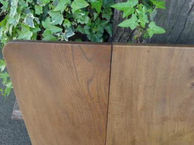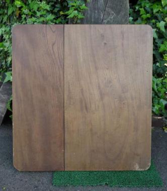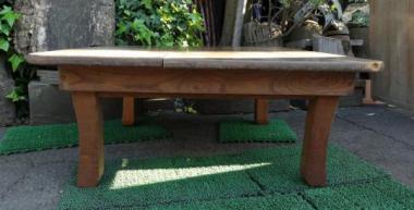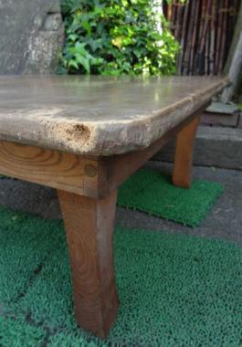 わけあり品。なだらかな木目でゆったりとした表情の天板です。素材そのままの色味を生かしたちゃぶ台です。天板に隙間が見られます。