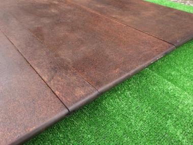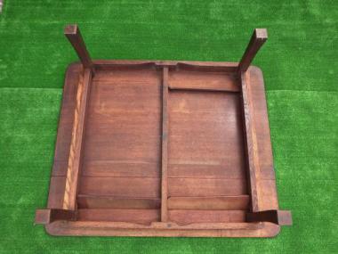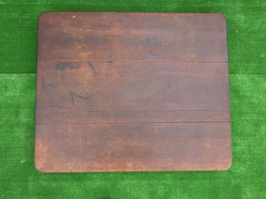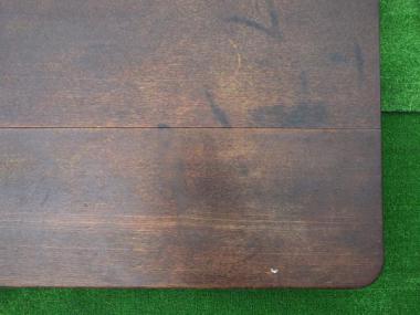 天板の大きさが780×905になります。落ち着いた色味です。天板には時間が経過したからこそでる様々な表情があります。裏面の抑えが一か所ありません。