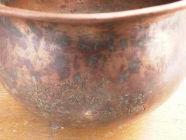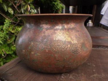 ところどころに愛らしいちいさな植物が彫り込まれています。さびもまんべんなくついており、風格ある面持ちです。