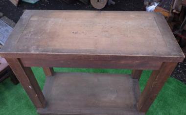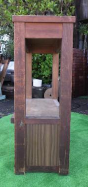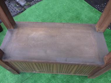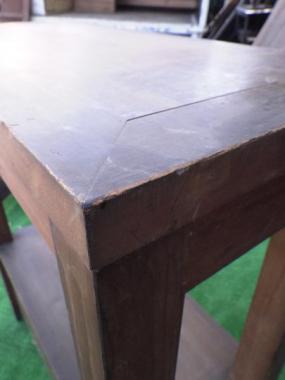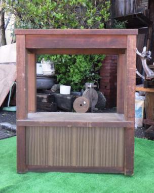 世田谷区の煙草屋さんで使われていたものです。曳家をされていたというご主人が手作りされたというこちらの台はサイズ感がちょうど良く、天板の素材もすべすべでとても使い勝手が良さそうです。下段の側面にはベニヤ板が貼られています。