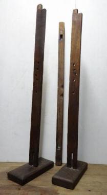 むしろ編み機という名前で当店で販売している部材を支えるものです。 組み立てたときの強度はそれほどタフではないですが、 工夫をすれば、什器や、オブジェなどに変身できそうな一品です。 木材も、時間を経ておりますので、新材にはない存在感があります。 組み立てたときの大まかなサイズですが 高さ1,435mm幅1,485mm奥行き395mmです。 詳細お問い合わせください。