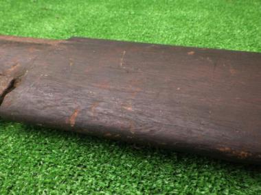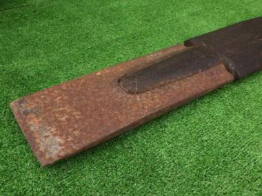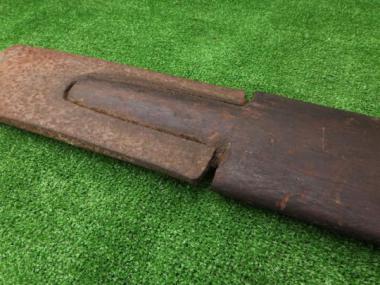 錆びた部分に歴史を感じます。木の形は絶妙に傾斜しており魅力的です。幅125mmは一番太いところでの計測です。