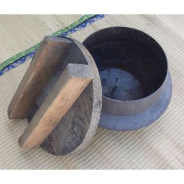 鉄製の釜と、蓋のセットです。直径405mm高さは360mmです。
