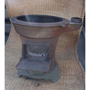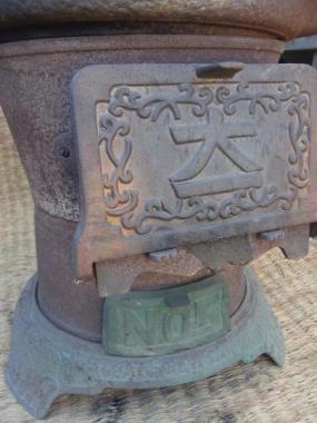 埼玉のいわつき、酒蔵にあった鉄製のかまどです。組み立て式、文字のデザインがレトロで味わい深いです。 高さ480mm横幅440〜(煙突部含め)540mmです。 詳細お問い合わせください。