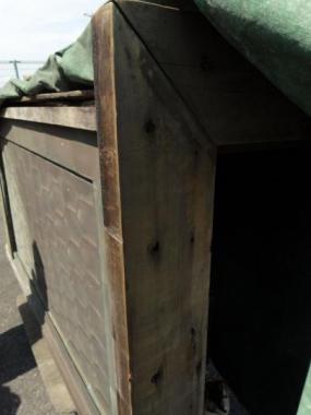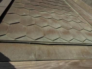 縁起が良いと云われる亀甲模様が目をひくお品。銅製の六角形を一列ずつ重ねるように丁寧に組み合わせて作られています。上部も雲が渦巻いたような模様の装飾があり、横からの見え方にもこだわりを感じます。それもそのはず、こちらは小田原の立派な古民家で使われていたんです。時間のながれを感じる銅板の色味も味わい深いです。