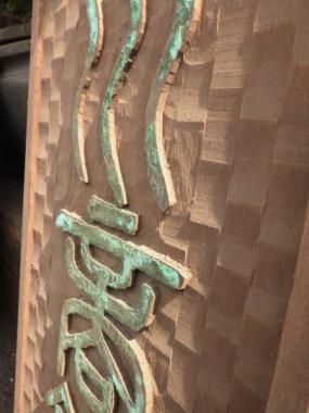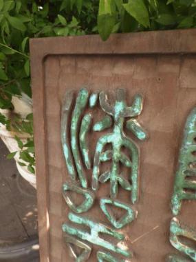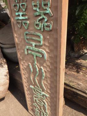 緑青色が味わい深い看板です。陶器屋さんで使われていたものと思われます。