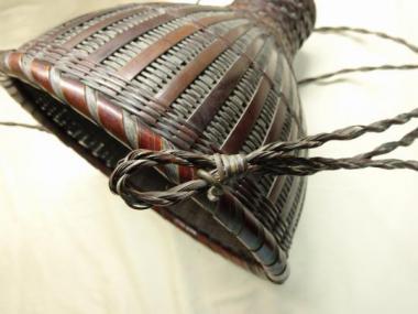 紐付きの竹のカゴです。生け花や飾りのカゴとしても使えると思います。