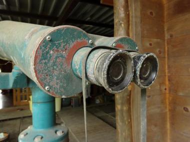 東京タワーで初期に使われていたもののようです。100円を入れるところがあります。ネジ止め処理や、塗装の色など懐かしさを感じさせます。遠くの遠くまで見渡せそうながっしりとしたフォルム。存在感はかなりあります。