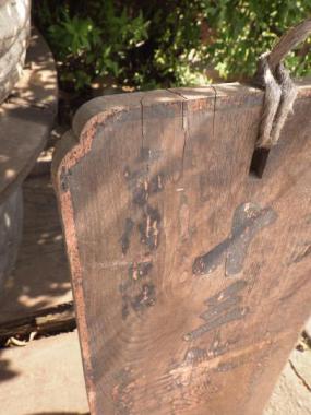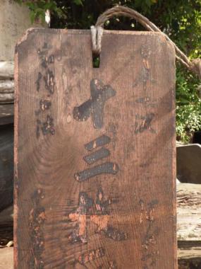 何て書いてあるのか近づいて見入ってしまう日本の看板です。墨の文字がもうほとんど読めなくなっており、古い味わい十分です。