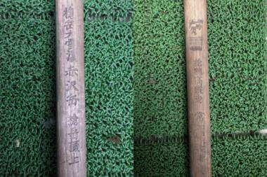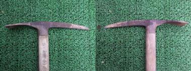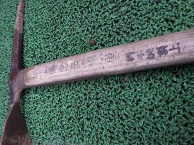 富山県の赤沢岳の登頂記念のピッケルであることがわかります。昔は登頂達成できると、こんな風に文字を掘っていたんでしょうか。柄の下の部分が割れてしまっています。