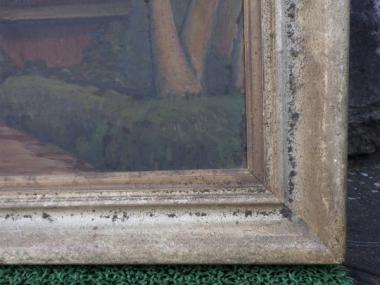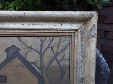 深みのある乳白色です。ところどころ塗装がとれてほどよく馴染んでいる表情。絵を邪魔しない控えめな印象の額縁です。