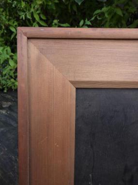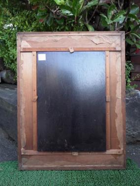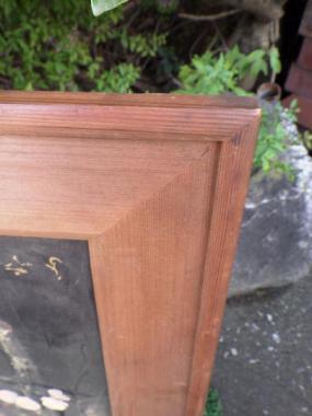 木目の調子を意識して部材を組み合わせてあり、静的な印象ながらも自然物のあたたかい表情が印象的な額です。