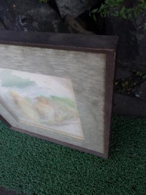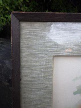 薄い水色が煌めくどこか懐かしさのあるマットが使われています。グレーにも見えるようなさりげない色味で絵を引き立てます。