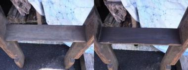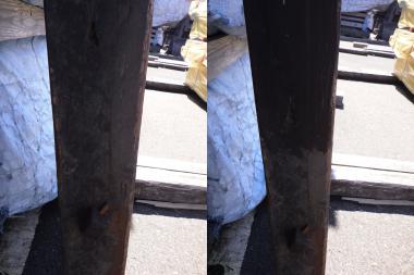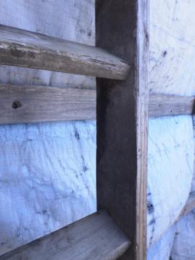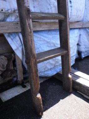 素材そのものが経年変化により味わいがあります。インテリアとしても魅力的な表情です。上階にひっかけるため、だったのか窪ませた跡があります。