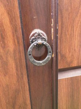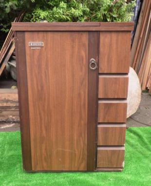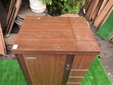 わけあり品。ミシンが傷んでいるため。寸法はミシンをしまった状態で計測したものです。ブラザー製のミシンです。正面から見て右側は引き出しになっています。文京区のお宅で使われていたものです。