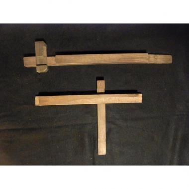 ケヤキの材木でできた鍵です。引っ掛けて鍵をかける形をしております。 丸みを帯びた部分、手馴染みの良い形をしております。 サイズですが、高さ295〜410mm幅25mm厚み20mmです。