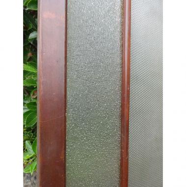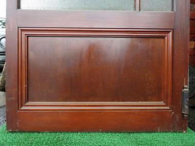 木材の表情とガラスの模様の相性が良く、調和がとれた落ち着いたドアです。 石川県金沢の風情ある写真屋さんで使われていた品物です。 高さ1756mm幅806mm厚み31mmです。 詳細お問い合わせください。
