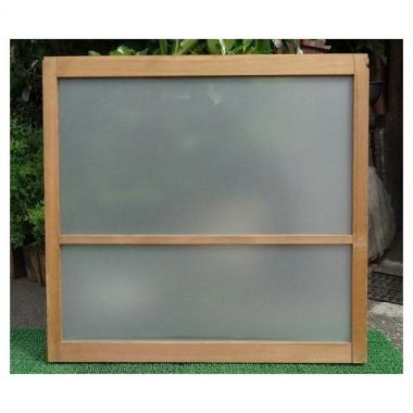 シンプルな枠と曇りガラスの組み合わせです。高さ800mm幅850mm厚み30mmです。