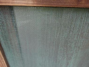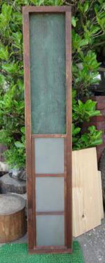 杉並区のお宅で使われていた窓です。緑色のところはふつうの金網ではなく、銅製のものが付いています。 当店では、あまりみることのない変わった金網です。