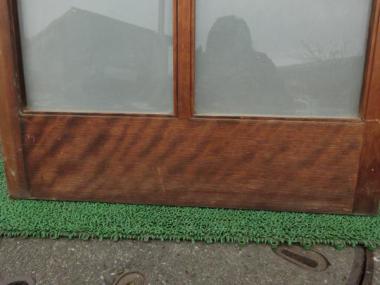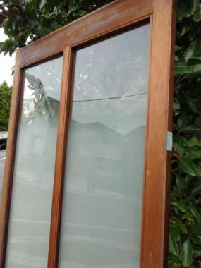 ちょっと珍しいサイズ感です。木の表情が所々しまうまの模様のようにも見える面があり、面白いです。曇りから透明へのグラデーションのガラスが二枚使われています。