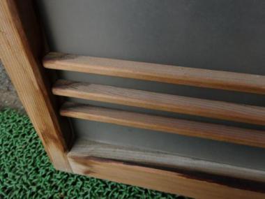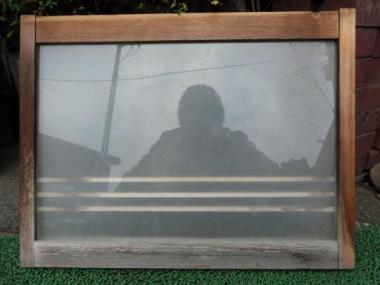 曇りガラスなので透けません。下の方についた三本の木は面取りしてあります。落ち着いた風合いです。色むらが気になる方は、柿渋塗装がおすすめです。