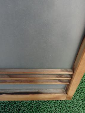 下方の三本の棒は面取りしてあり、落ち着いた表情です。サイズが合えば、大変お値打ちな価格にしております。このままの風合いも素敵ですが、柿渋で軽く掃除すると色が調和しますのでそれもおすすめです。