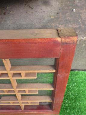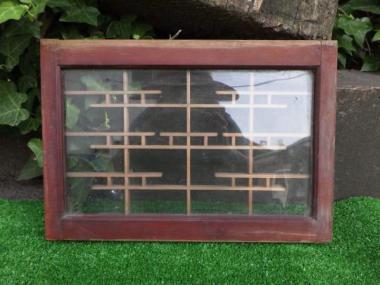 控えめな格子の装飾で小粋です。赤茶っぽい色とも好相性です。透明のガラスが入っています。