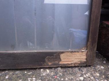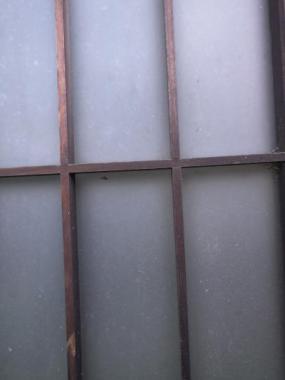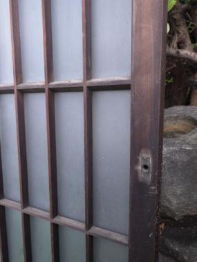 わけあり品。下桟に痛みがあるため。曇りガラスが使われており、透けません。