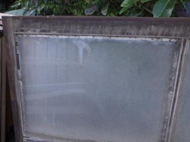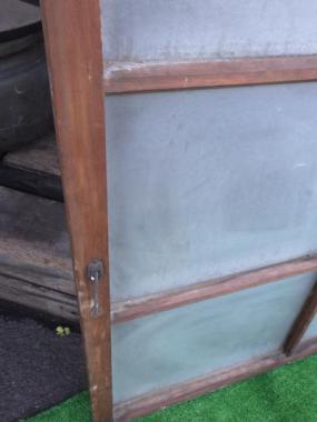 わけあり品。ガラスをパテ留めしているため、ガラス交換の際に手間がかかります。はげかけたパテの表情も古さの演出の上で、どこか魅力的です。