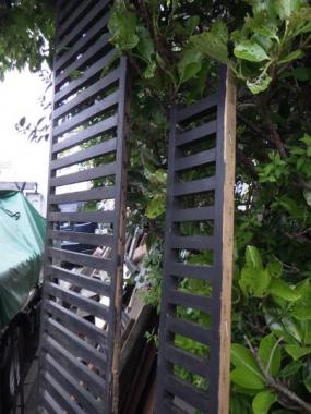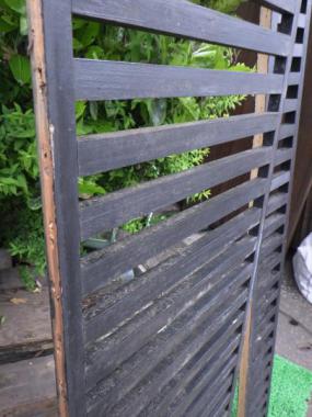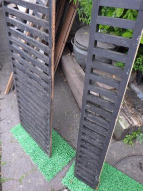 表参道にあった店舗で使われていた欄間です。梁に合わせて高さを変えており、両端で高さが異なる台形になっています。 右側の小さい方は1655×175×24で、こちらは通常の作りで高さは一定です。