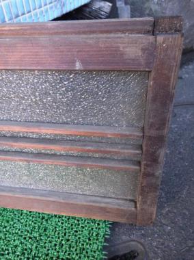 わけあり品。ガラスが汚れている、桟に傷みがあるため。