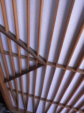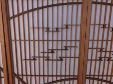 見事な扇模様が格子で演出されている意匠です。絵柄の部分は少し色の濃い素材を使うなど、細部までこだわりを感じます。単品販売ですが、ぜひ4枚合わせて使っていただきたい一品です。