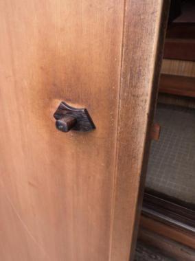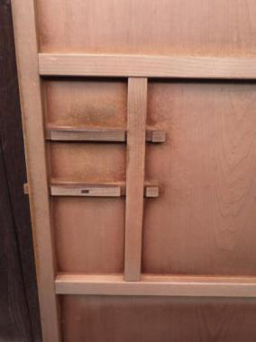 千葉県市川市の大正時代に建てられた古民家で使われていました。すべっとした触り心地の爽やかな雪隠戸です。内鍵がついています。