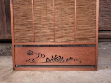 在庫の内1点は幅が787mmになります。花のようなものが透かし彫りしてあります。千葉県市川市の大正時代に建てられた古民家で使われていたものです。