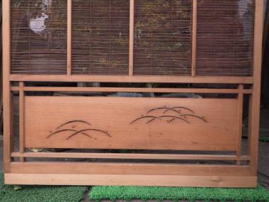 腰板だけでなく上部も装飾されており、雅な雰囲気を演出できそうです。在庫のうち1枚は簾部分に破損があるため5,000(税抜)円です。