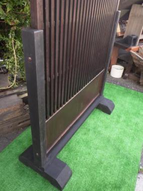 在庫のうち幅が870mmのものが1枚ございます。2枚1組でご購入の場合は110,000円(税別)です。 衝立用として使える衝立足付のものが1枚ございます。こちらの幅は890mmです。