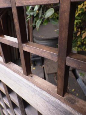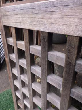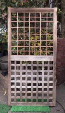 お寺で使われていた格子戸で、高さが1550mmと低めです。上部分入れ替えることができるようになっています。
