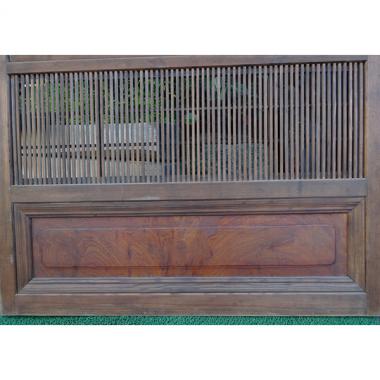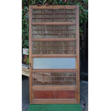 もともと障子が付いていました。紙を剥がした状態で保管しています。 主な材質は杉で、腰板は堅木、引き手はクロガキです。 サイズは、高さ1,745mm幅900mm厚み29mmです。 詳細は、お問い合わせください。