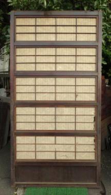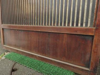全体にまんべんなく艶があり、品のある大阪格子戸です。落ち着いた色味なので設置した時に、しっくりと馴染みそうです。日焼けなどのダメージは見られませんが、桟の一部に欠けがあります。