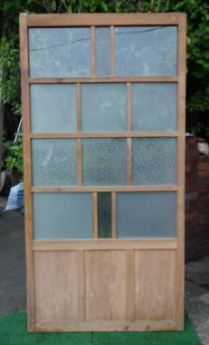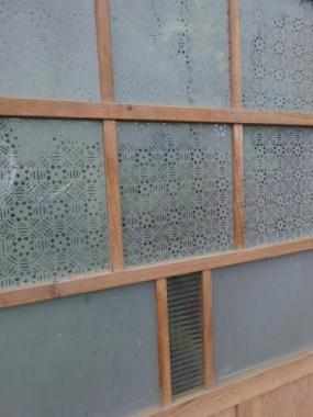 モールガラス、透明ガラス、スリガラスのほか、めずらしい模様ガラスが使われています。遠目の印象はシンプルですが、近くで見ると色々なガラスの表情が楽しめます。