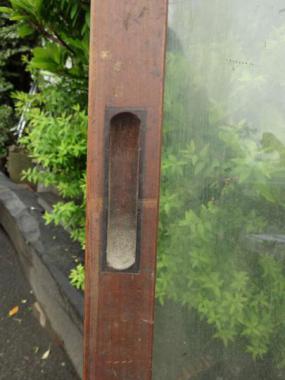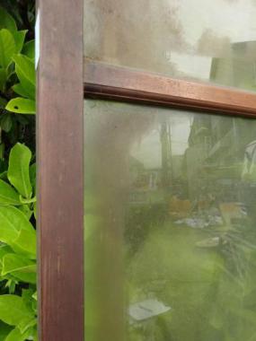 わけあり品。腰に隙間がみられます。経年変化によりガラスが黄ばんでいます。新品にはないくすんだ味わいを楽しめます。このほかに、一点だけ幅が670mmのものがございます。