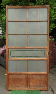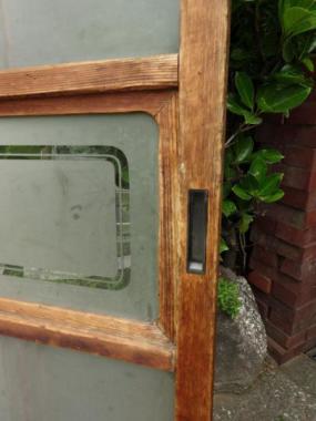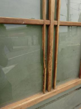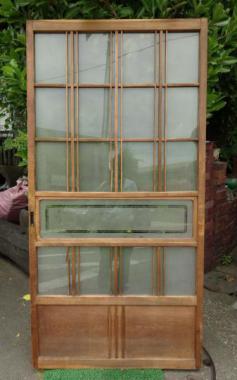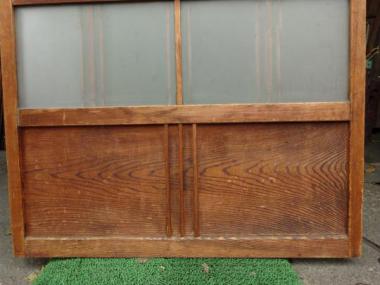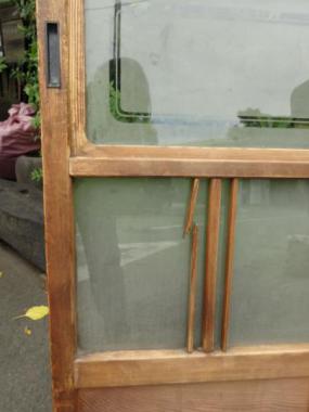 わけあり品。格子等に壊れている個所がございます。葛飾区の民家で使われていたものです。格子に一工夫ありますが、華美すぎず落ち着きのある意匠になっています。曇りガラスが16枚、模様ガラスが1枚入っています。壊れのない在庫に関しましては10000円(税抜)/1枚となります。