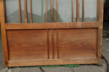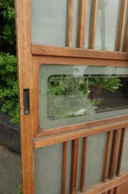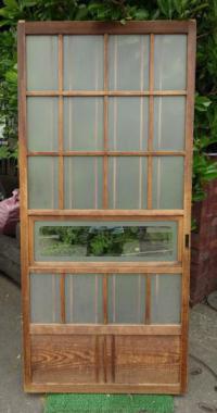 葛飾区の民家で使われていたものです。格子に一工夫ありますが、華美すぎず落ち着きのある意匠になっています。曇りガラスが16枚、模様ガラスが1枚入っています。組購入の際は販売価格より3割引き致します。