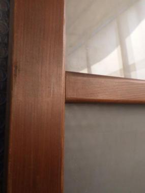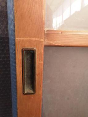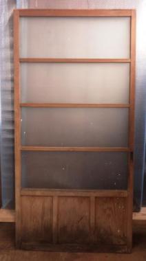 東京の恵比寿で使われていたものです。素材選びからこだわっていたかのような触り心地の良い木が使われています。ガラスは全て曇りガラスです。在庫のうち1枚はガラスが一枚ありません。
