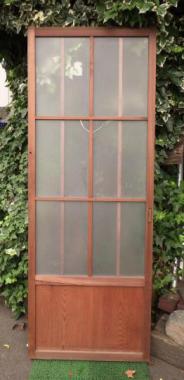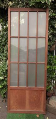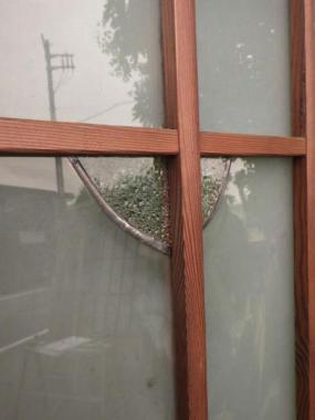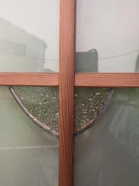 銀継ぎしたかのようなアレンジが魅力のオリジナルのガラス戸です。割れてしまった部分を透明のダイヤガラスで補いました。日本の建具でありながらヨーロッパの田舎のようなディテールもあります。在庫のうち、もう一点は割れてないので加工なしの状態です。(価格は同じです)