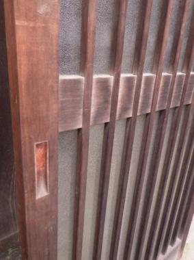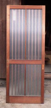格子のがっしりとした作りが魅力です。梨地の曇りガラスなので向こうが透けて見えづらいです。千葉県市川市の大正時代に建てられた古民家のものです。